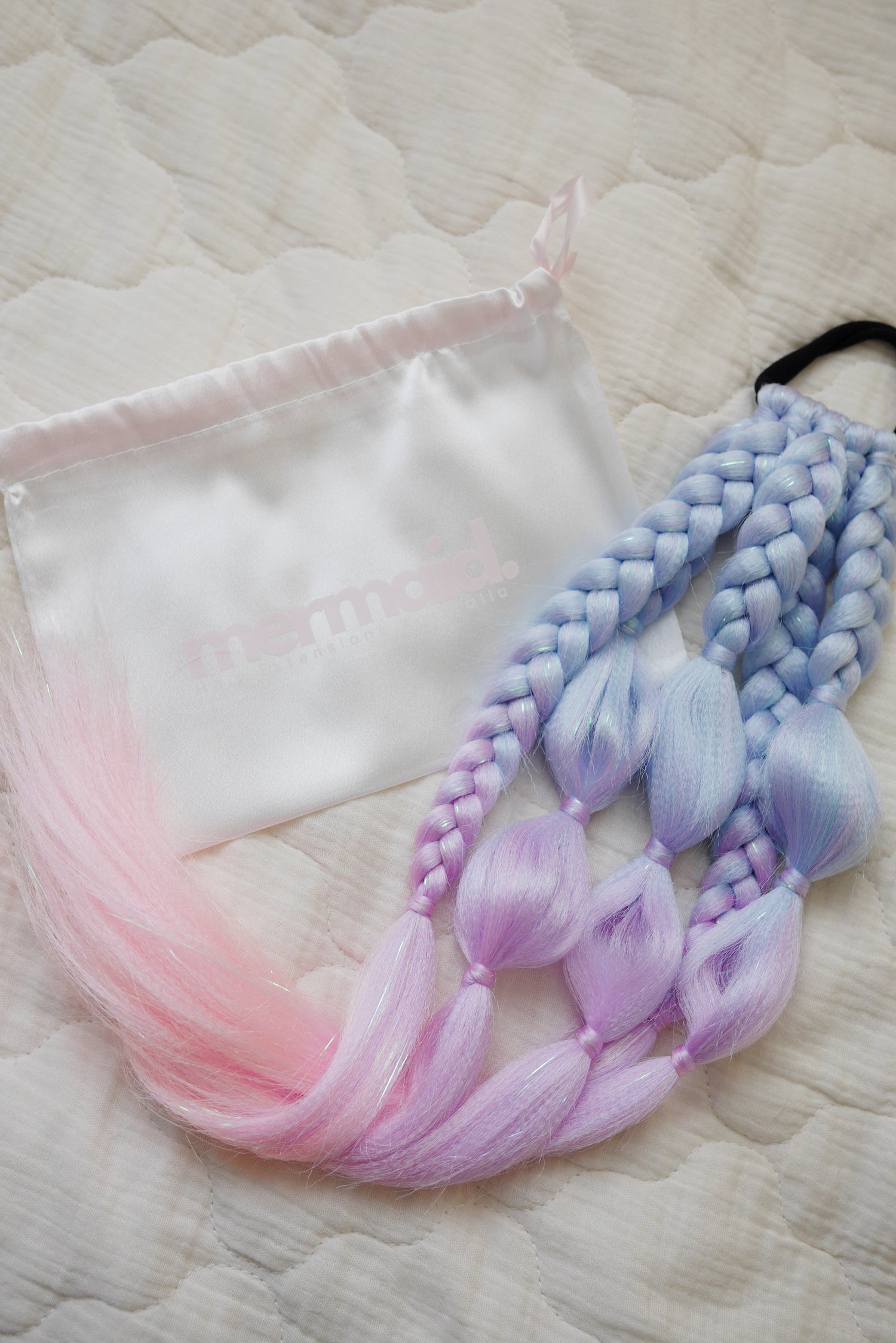 When not in use, store your Mermaid Hair Extension Ponytail in the storage bag they arrived in. This prevents tangling and helps retain their original texture and appearance. If you wish to take extra care plait the hair prior to putting them in the bag to keep them safe and secure.